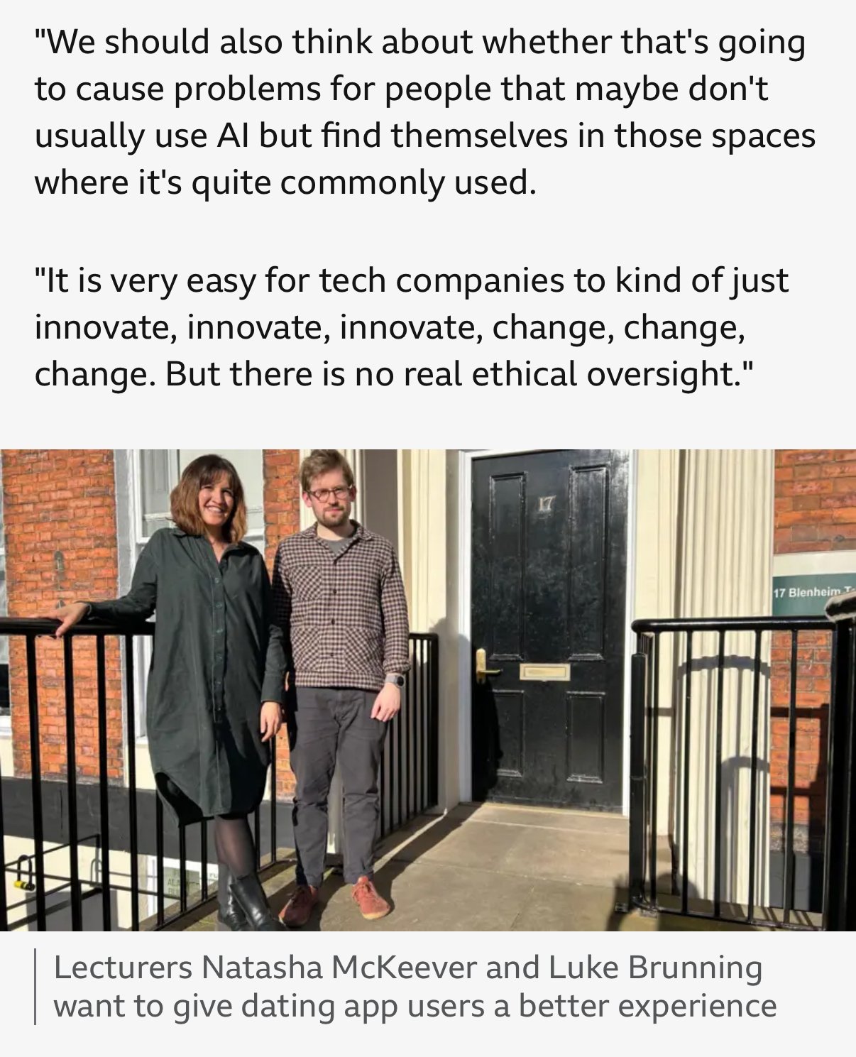 In 2024 I also co-established Ethical Dating Online, a research network of academics who want to improve online dating. (Find it on Bluesky and Instagram.)